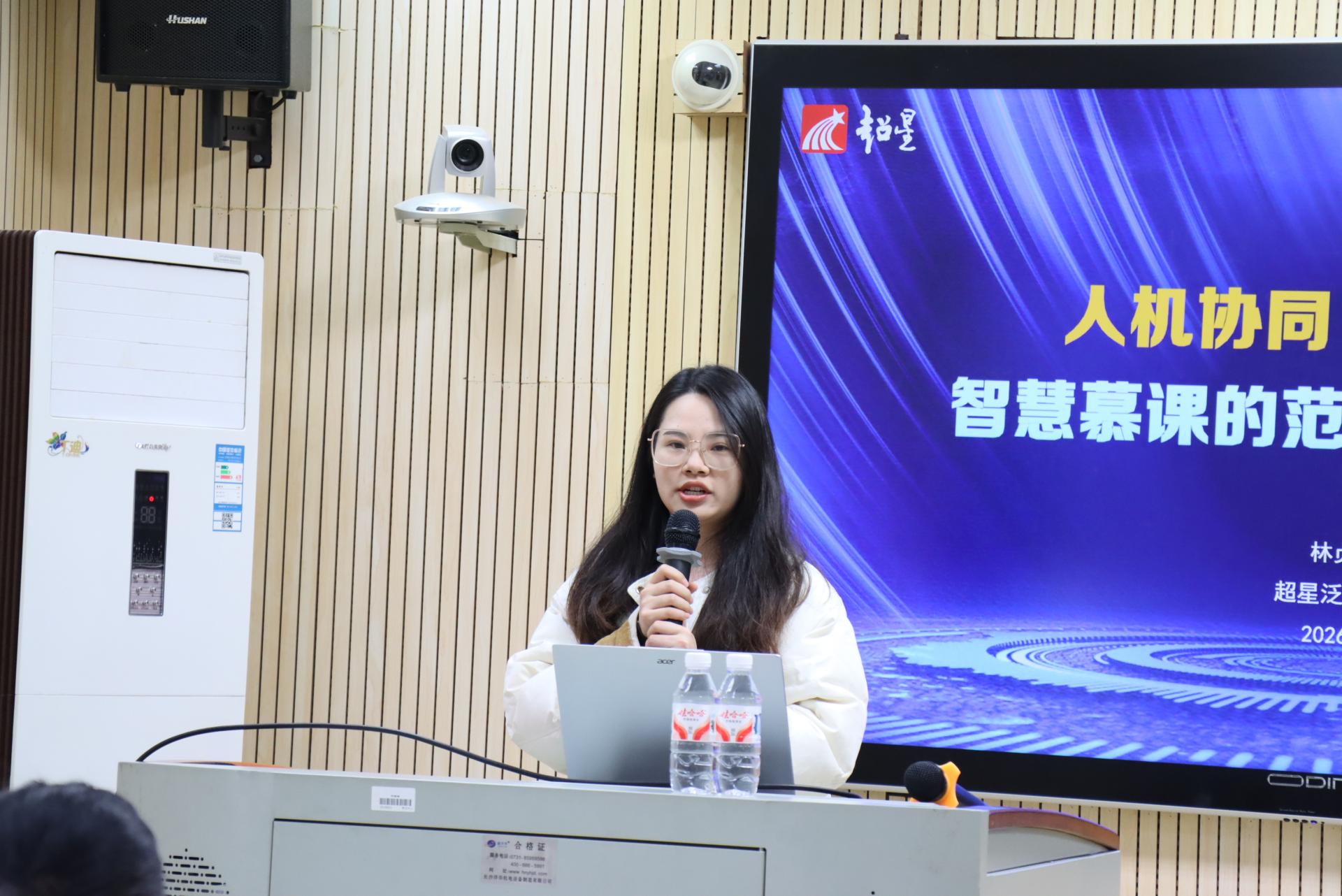 工作坊特邀超星集团两位资深专家主讲,围绕智慧教育的发展需求,设计了“理论引导+实操训练”相结合的课程体系。培训内容分为两大重点板块:在“数智驱动的精准化个性化教学”部分,深入讲解了AI助教应用、知识库构建、智能工具辅助教学设计等核心内容;在“AI实践智能体与学生思维训练”部分,通过真实案例剖析与现场操作演示,指导教师将AI技术有效融入思维培养过程,为智慧课程建设提供了明确路径与方法支撑。教师们结合自身教学实际,就平台功能与AI工具使用等问题踊跃交流,展现出极高的学习热情与探索动力。