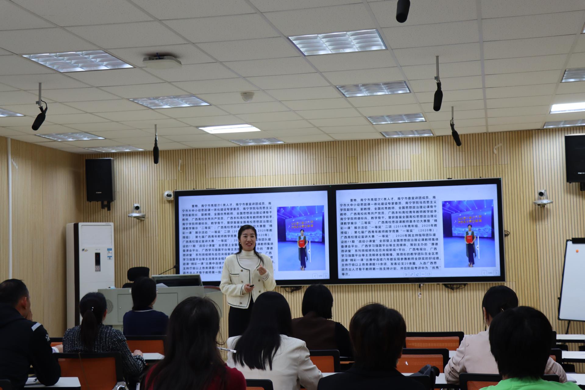 2021年12月24日下午,我校在行政楼123教室开展了第二十一期教学沙龙,主题为“以赛促教,规范教学”。本次沙龙由马克思主义学院副院长董艳老师主讲,即将参加2021-2022学年青年教师教学竞赛校级决赛的各学院教师参与了此次活动。